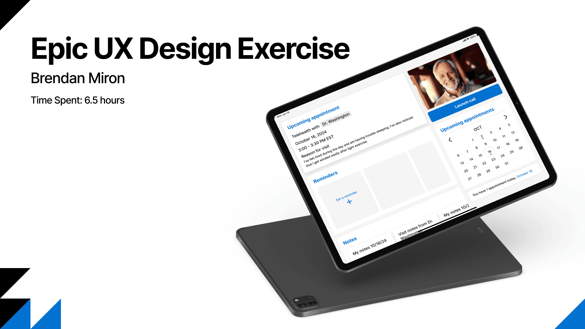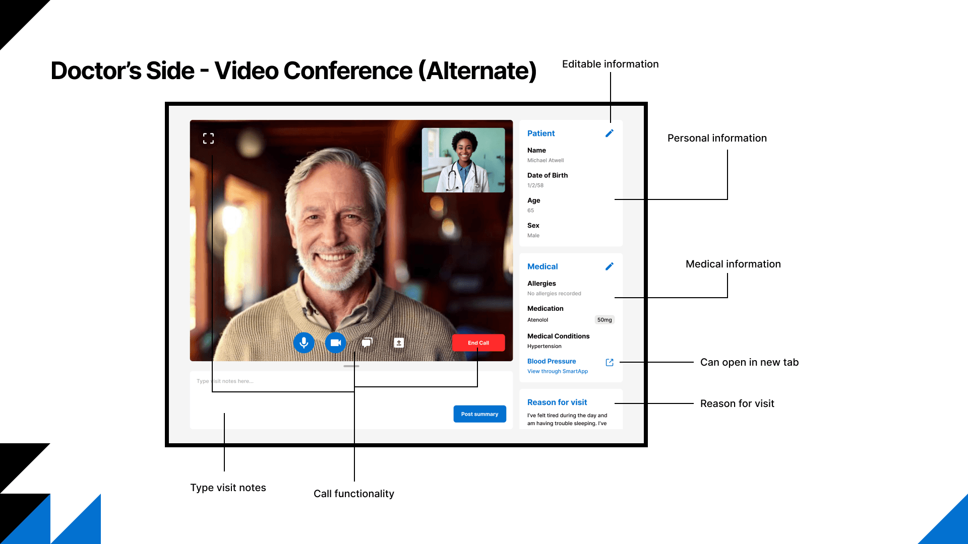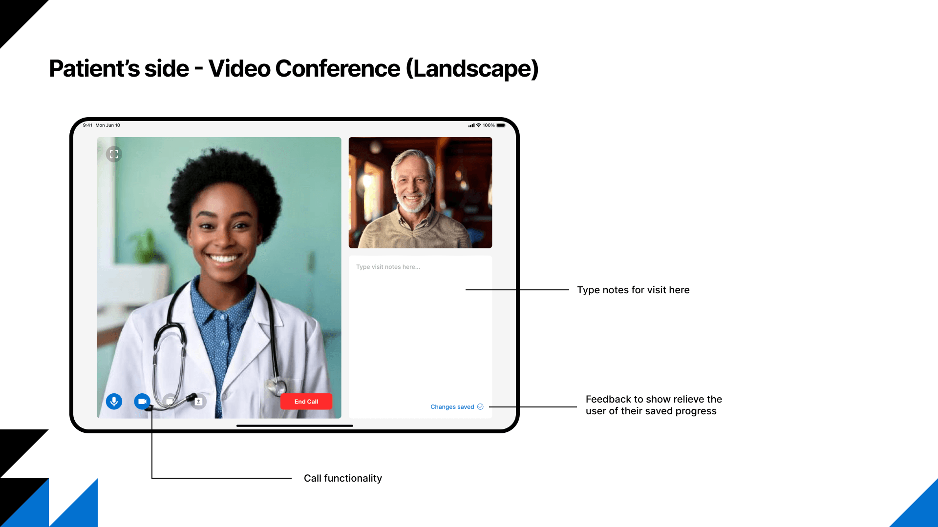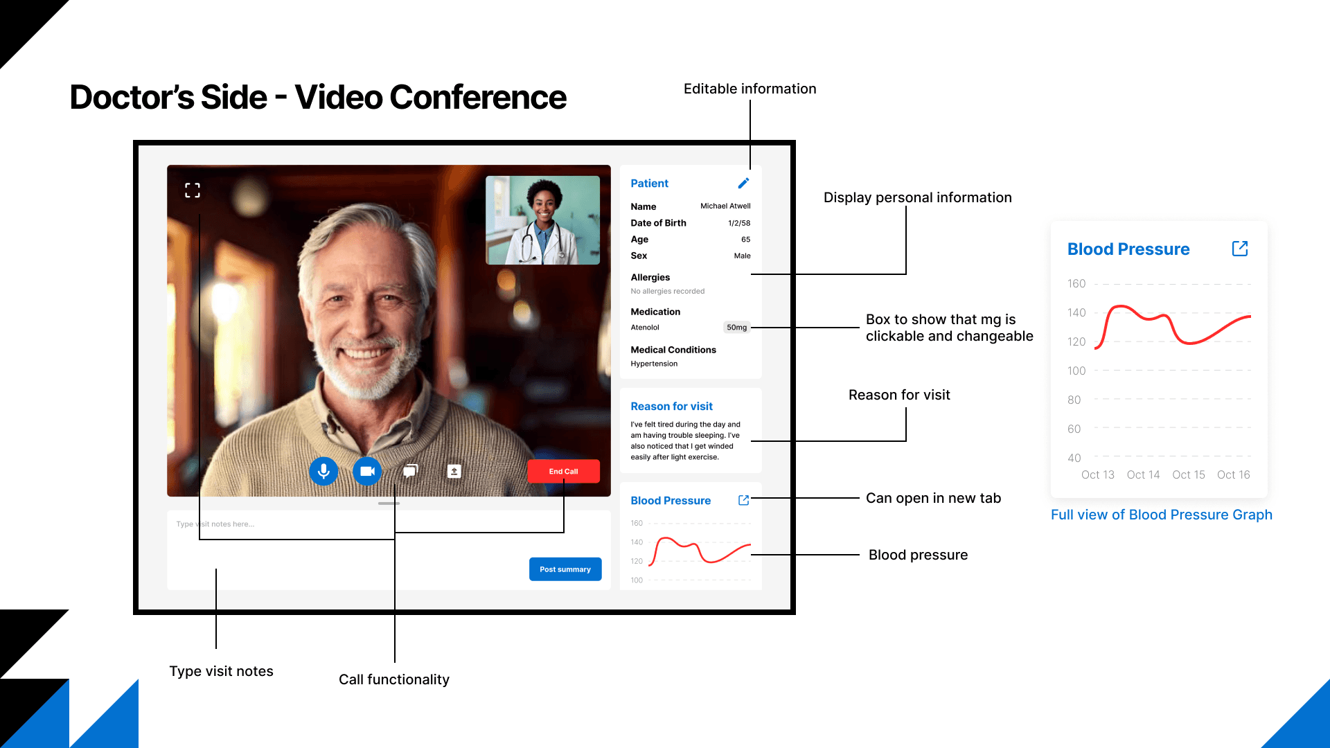 An assignment for an interview for Epic. The goal was to provide the interface for a video conference software that fulfilled a number of criteria, while also designing the doctor's (desktop) and patient's (tablet) sides.