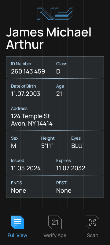 Create a secure, safe, and expressive digital experience for a standard driver’s license. Convey the necessary information in a unique yet presentable way.
