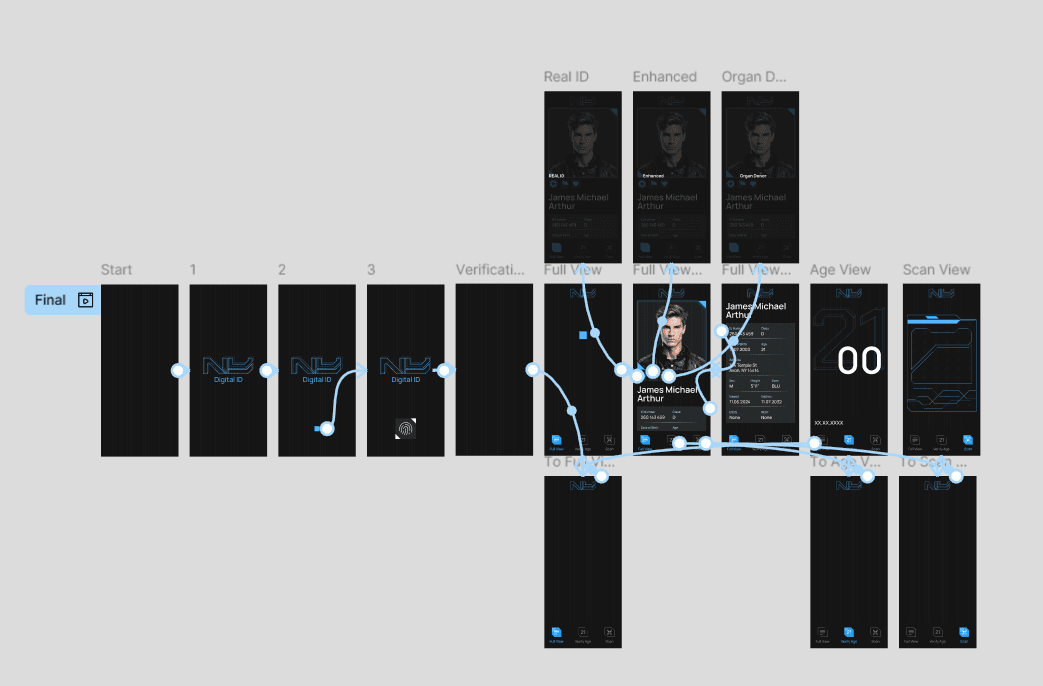 A digital driver's license. The purpose of this project was to create an interface that can display important information, while maintaining a sense of security and style, leaning away from the standard "government issued" version of Mobile ID's.