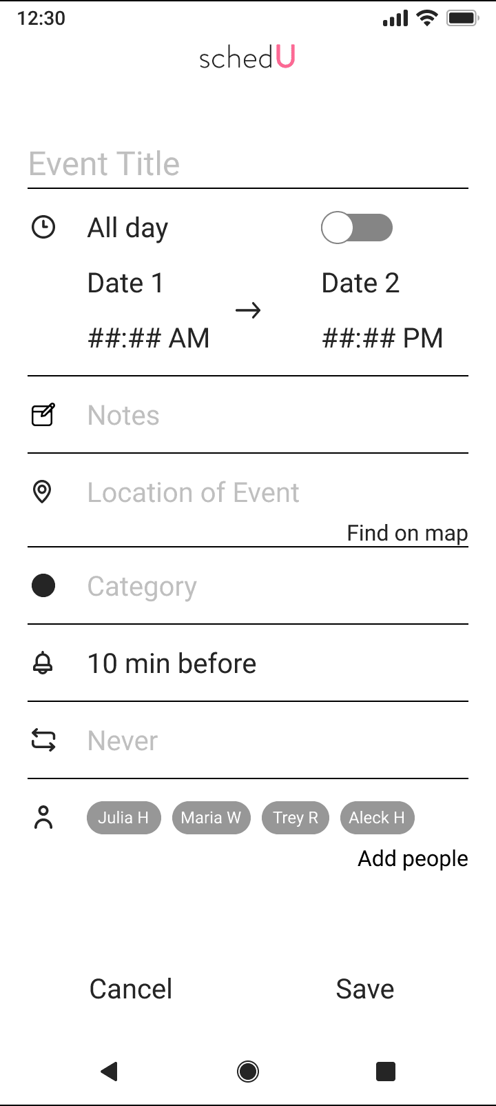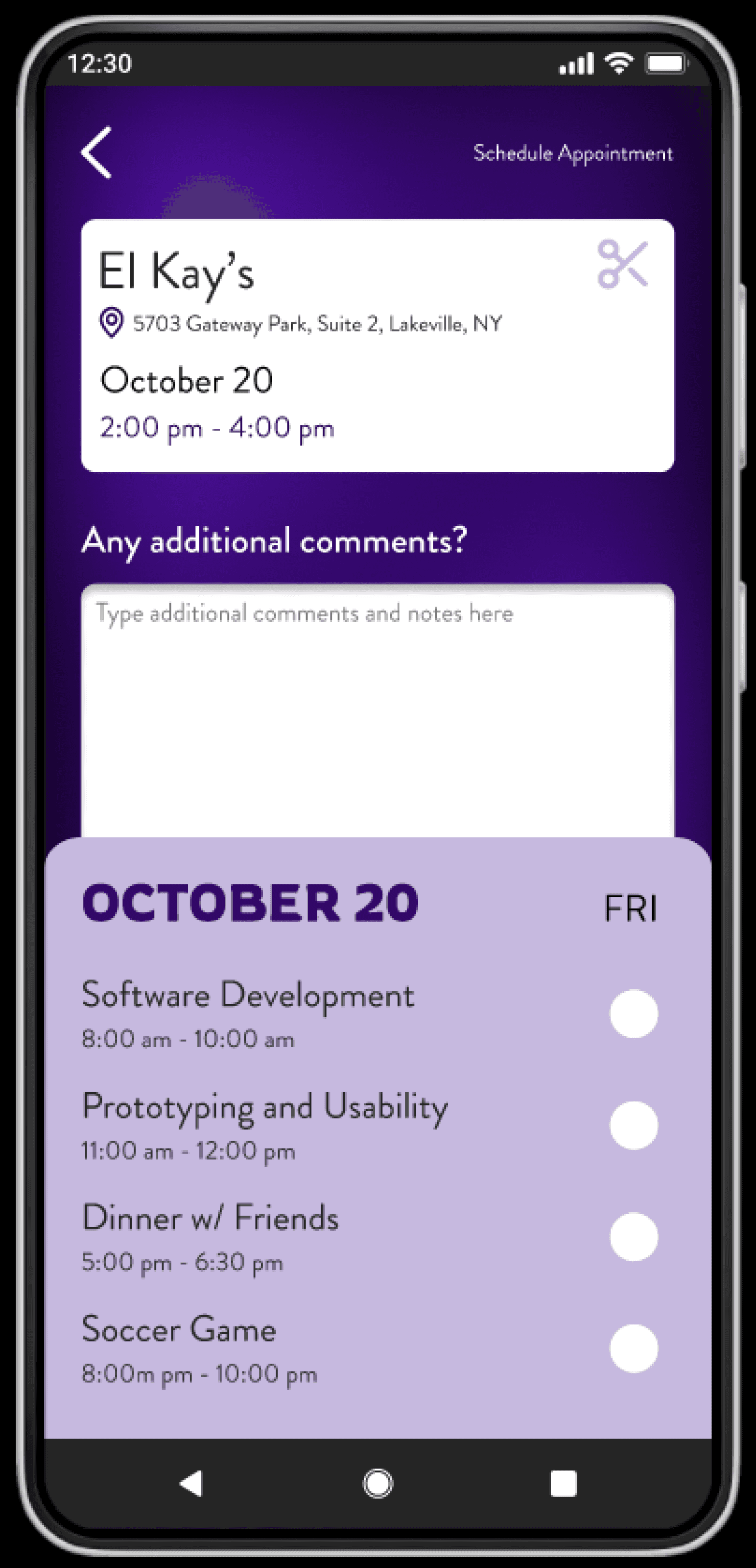 This was my first time going through the UX Research journey, and I certainly learned a lot of helpful insight, not just on calendar and scheduling interfaces, but as a UX/UI researcher and designer. This was also my first time working with Figma, and it was certainly a learning experience. Looking back at this with the knowledge I have of FIgma now, there are some major improvements that could be made to the interface design and efficiency.